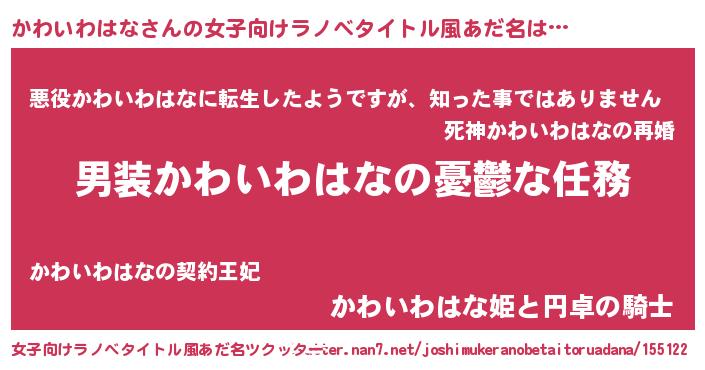 | 男性向けラノベタイトル風あだ名 | 『冴えないかわいわはなの育てかた』 |