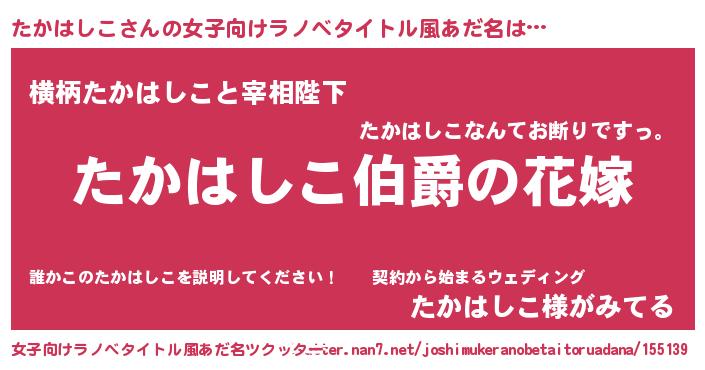 | 意味不明あだ名 | 『たかはしこフォーエバー』 |