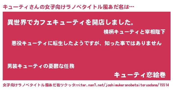 | 意味不明あだ名 | 『住所不定無職キューティ(41歳)』 |