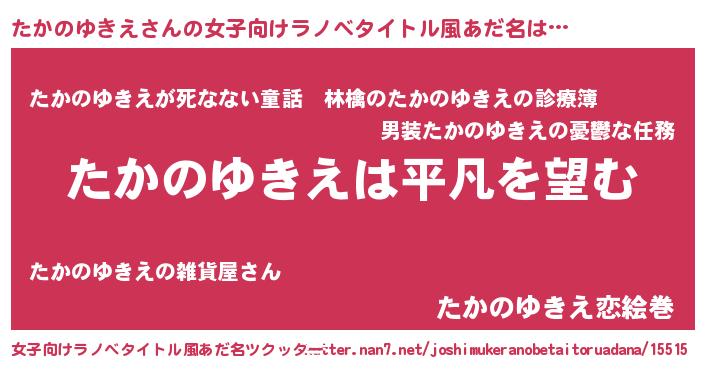 | 男性向けラノベタイトル風あだ名 | 『ダンジョンにたかのゆきえを求めるのは間違っているだろうか』 |