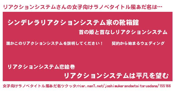 | 胡散臭い通販商品みたいなあだ名 | 『億万長者になれる霊験あらたかなお札…その名も「リアクションシステム」』 |