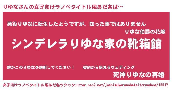| 男性向けラノベタイトル風あだ名 | 『冴えないりゆなの育てかた』 |