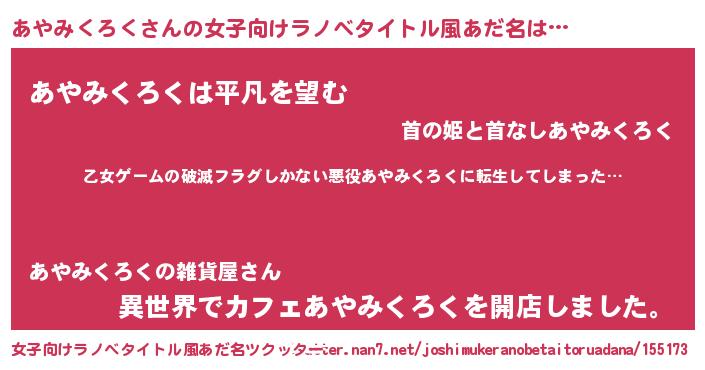 | 胡散臭い通販商品みたいなあだ名 | 『世界中を虜にした世界で10本だけ現存している希少なブランデー…その名も「あやみくろく」』 |