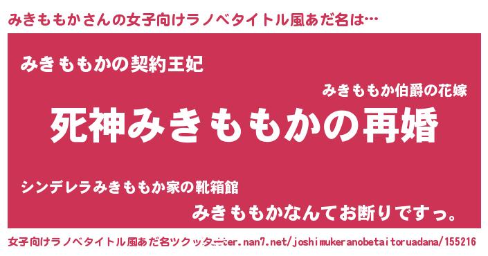 | 男性向けラノベタイトル風あだ名 | 『ノーゲーム・ノーミキモモカ』 |