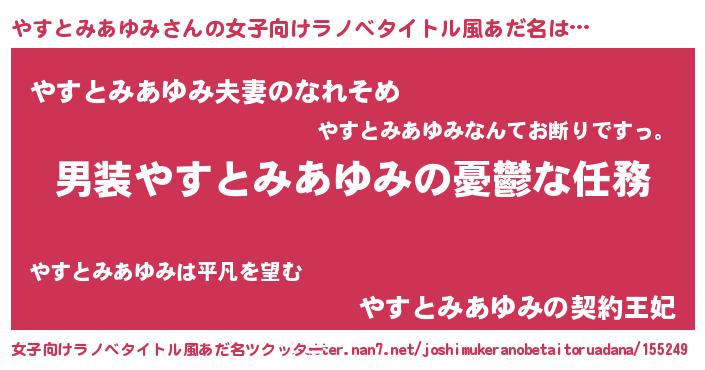 | ヘコむあだ名 | 『やすとみあゆみ(爆)』『やすっぺ』 |