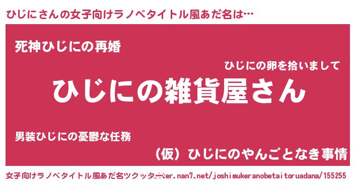| 男性向けラノベタイトル風あだ名 | 『やはりひじにの青春ラブコメはまちがっている 』 |