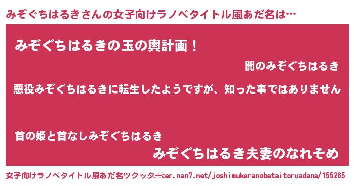 | 男性向けラノベタイトル風あだ名 | 『この素晴らしい世界にみぞぐちはるきを!』 |