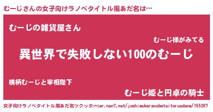 | 男性向けラノベタイトル風あだ名 | 『むーじという概念が存在しない退屈な世界 』 |