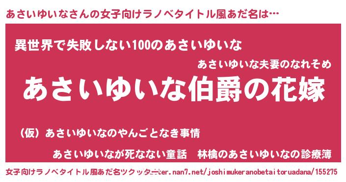| 意味不明あだ名 | 『あさいゆいなフォーエバー』 |