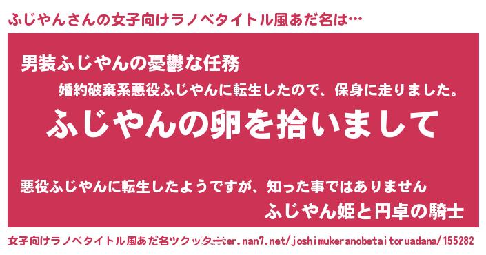 | 男性向けラノベタイトル風あだ名 | 『ダンジョンにふじやんを求めるのは間違っているだろうか』 |