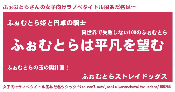 | 男性向けラノベタイトル風あだ名 | 『ダンジョンにふぉむとらを求めるのは間違っているだろうか』 |
