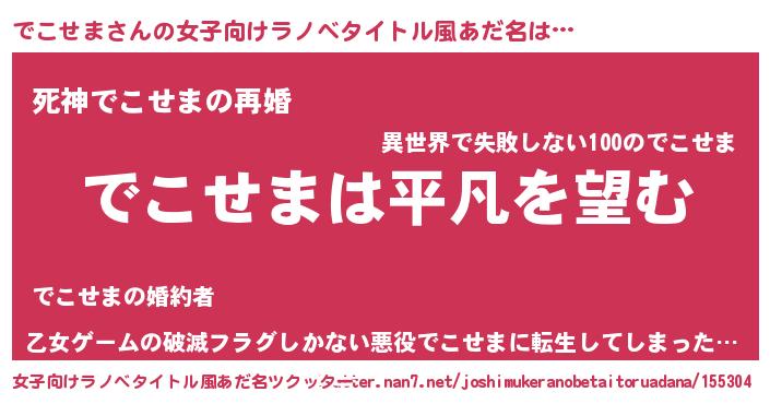 | 男性向けラノベタイトル風あだ名 | 『ダンジョンにでこせまを求めるのは間違っているだろうか』 |
