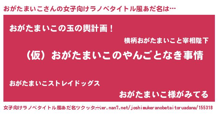 | 男性向けラノベタイトル風あだ名 | 『おがたまいこの憂鬱』 |