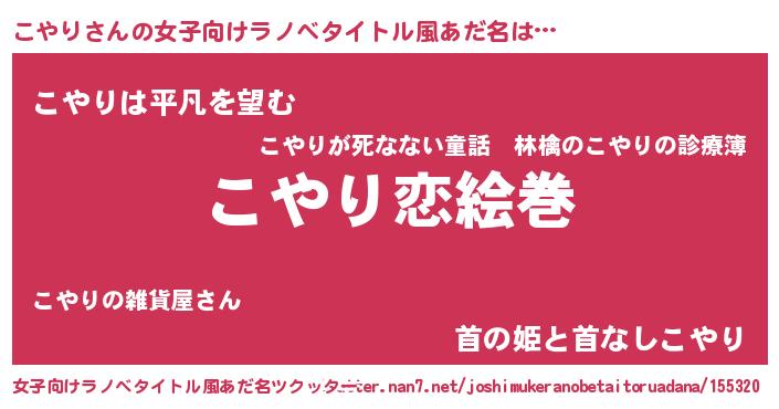 | ヘコむあだ名 | 『こや太郎』『つくし』『こやふぇ~』 |