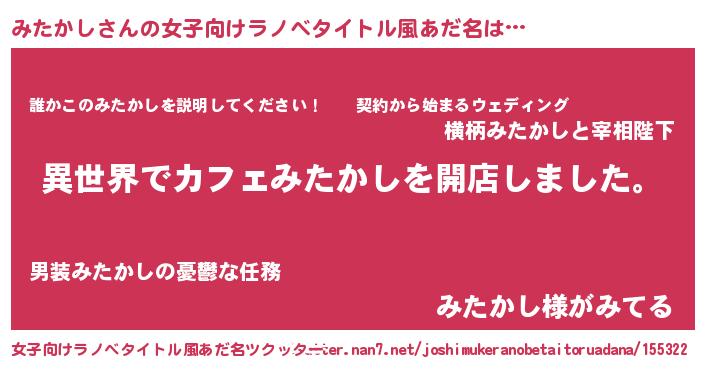 | 男性向けラノベタイトル風あだ名 | 『誰もが恐れるあのみたかしが、ぼくの専属メイドになるようです。』 |