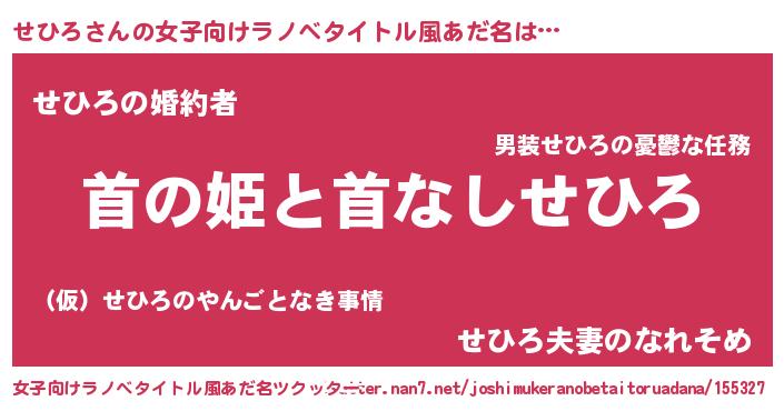 | 意味不明あだ名 | 『せひろフォーエバー』『ペロリンせひろ』 |