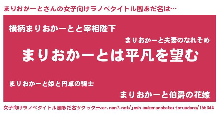 | 男性向けラノベタイトル風あだ名 | 『ダンジョンにまりおかーとを求めるのは間違っているだろうか』 |