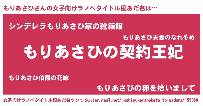 | 男性向けラノベタイトル風あだ名 | 『もりあさひという概念が存在しない退屈な世界 』 |