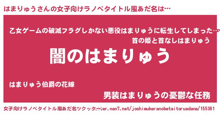 | 意味不明あだ名 | 『自称はまりゅう』 |