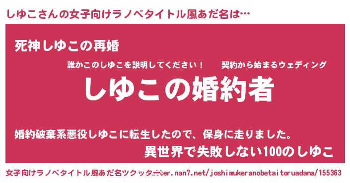 | 胡散臭い通販商品みたいなあだ名 | 『運命の人と巡り会える高級そうな絵画…その名も「しゆこ」』 |