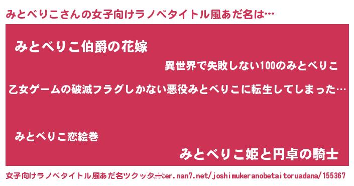 | 意味不明あだ名 | 『住所不定無職みとべりこ(13歳)』 |