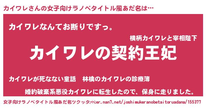 | 男性向けラノベタイトル風あだ名 | 『カイワレという概念が存在しない退屈な世界 』 |