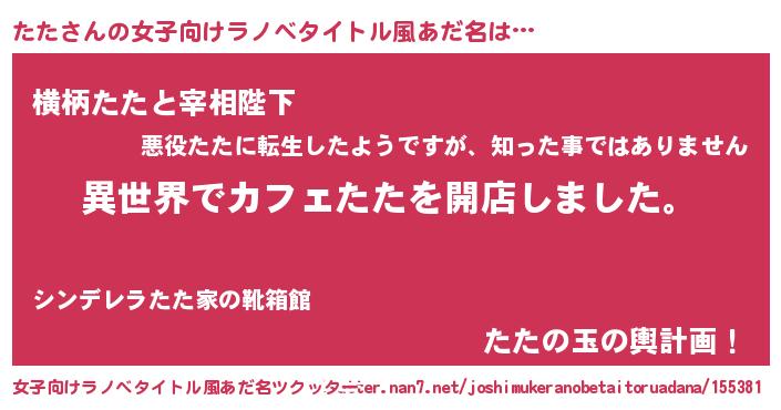 | 男性向けラノベタイトル風あだ名 | 『誰もが恐れるあのたたが、ぼくの専属メイドになるようです。』 |