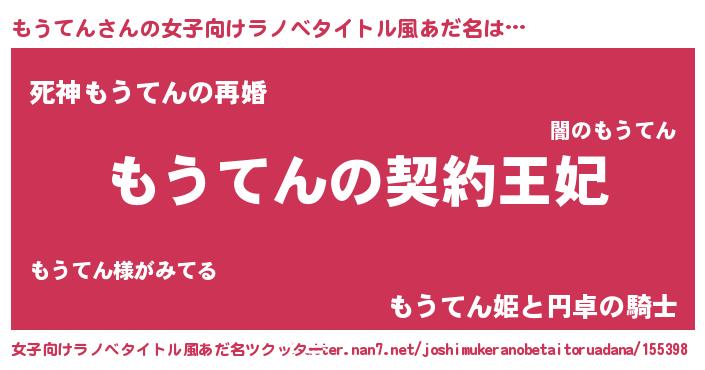 | 胡散臭い通販商品みたいなあだ名 | 『来世でも幸せになれる健康食品…その名も「もうてん」』 |