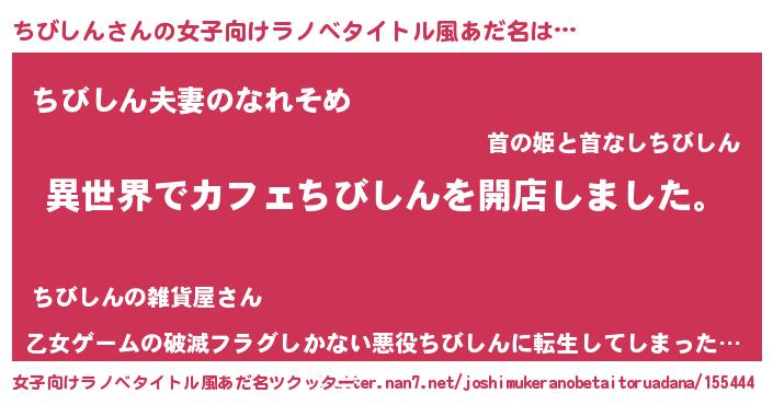 | 男性向けラノベタイトル風あだ名 | 『誰もが恐れるあのちびしんが、ぼくの専属メイドになるようです。』 |
