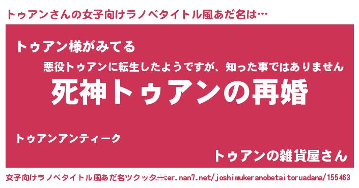 | 男性向けラノベタイトル風あだ名 | 『ノーゲーム・ノートゥアン』 |
