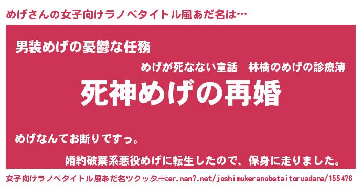 | ヒーロー風カッコイイあだ名 | 『天空の使者めげ』『仮面メゲダー』 |