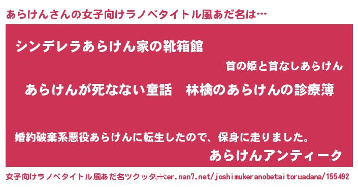 | 男性向けラノベタイトル風あだ名 | 『魔弾の王とあらけん』『緋弾のアラケン』 |