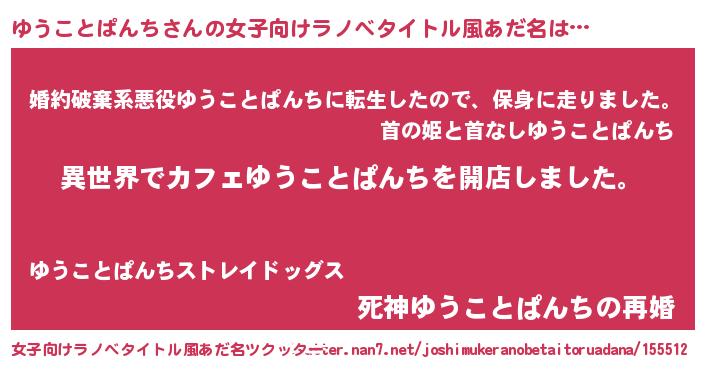 | 意味不明あだ名 | 『永久保存ゆうことぱんち』 |