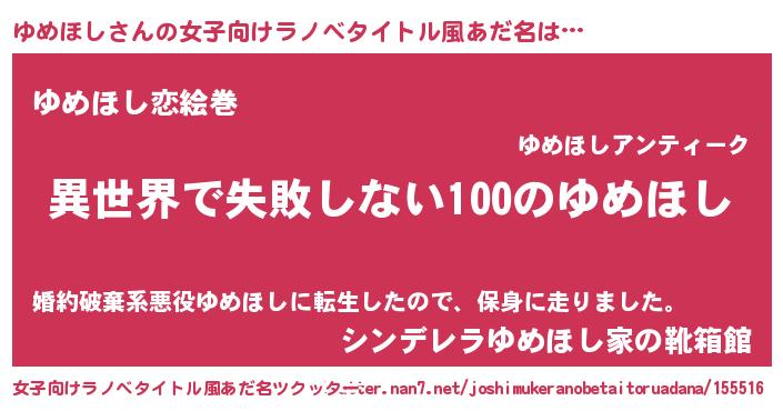 | 男性向けラノベタイトル風あだ名 | 『ゆめほしという概念が存在しない退屈な世界 』 |