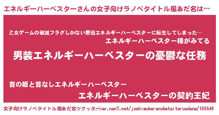 | 胡散臭い通販商品みたいなあだ名 | 『世界中を虜にした世界で10本だけ現存している希少なブランデー…その名も「エネルギーハーベスター」』 |