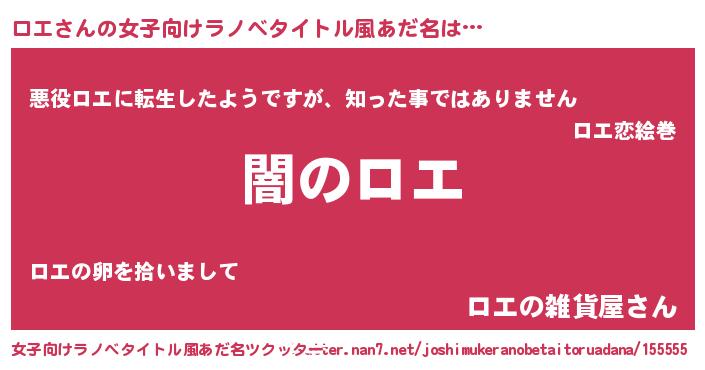 | 男性向けラノベタイトル風あだ名 | 『Re:ロエから始める異世界生活』 |