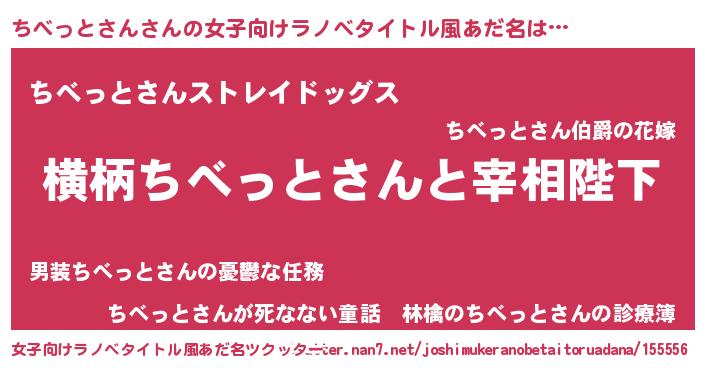 | 男性向けラノベタイトル風あだ名 | 『ちべっとさんに滅ぼされるだけの簡単なお仕事です』 |