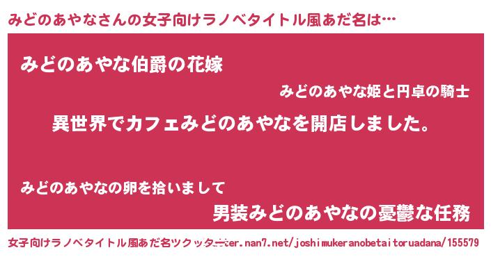 | 意味不明あだ名 | 『永久保存みどのあやな』 |