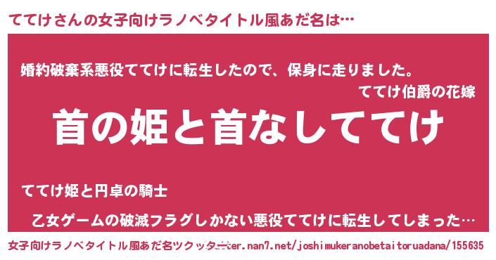 | 男性向けラノベタイトル風あだ名 | 『はたらくててけさま!』『ててけの憂鬱』 |