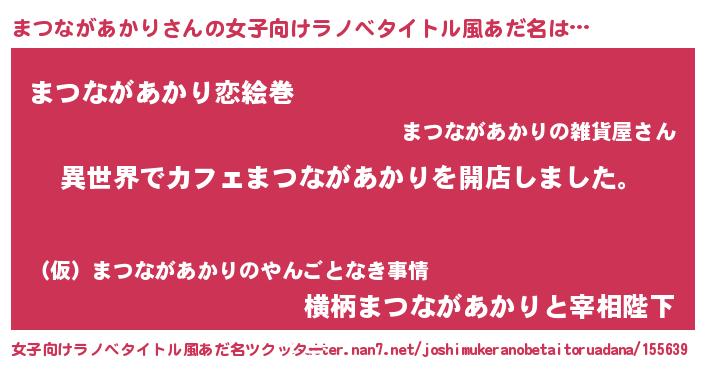 | 男性向けラノベタイトル風あだ名 | 『誰もが恐れるあのまつながあかりが、ぼくの専属メイドになるようです。』 |