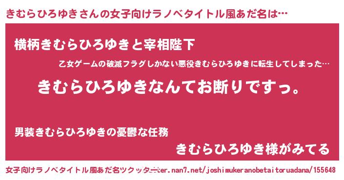 | 男性向けラノベタイトル風あだ名 | 『魔法科高校のきむらひろゆき』 |