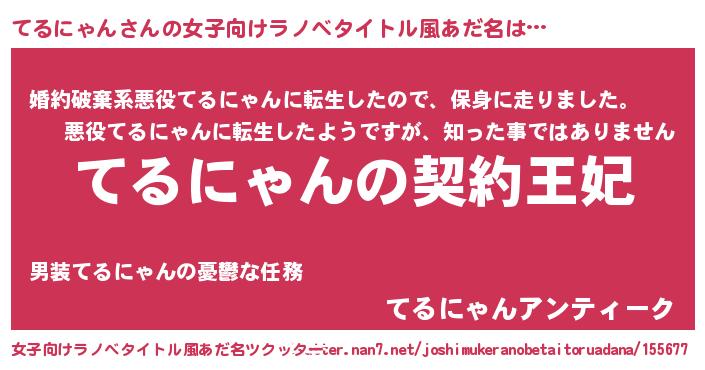 | 男性向けラノベタイトル風あだ名 | 『てるにゃんという概念が存在しない退屈な世界 』 |