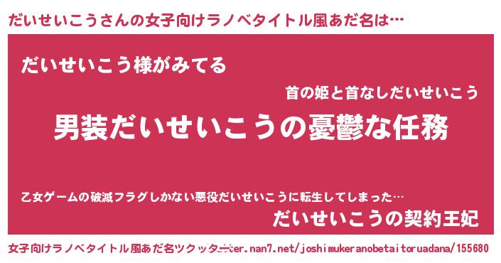 | 男性向けラノベタイトル風あだ名 | 『冴えないだいせいこうの育てかた』 |