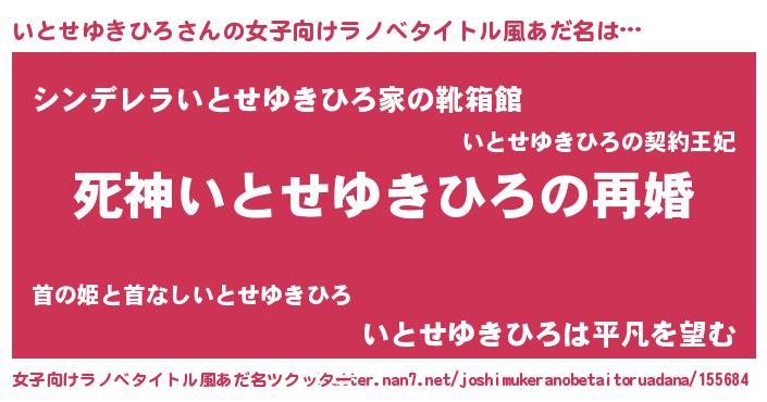 | 男性向けラノベタイトル風あだ名 | 『ノーゲーム・ノーイトセユキヒロ』 |
