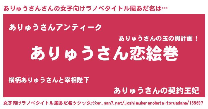 | 男性向けラノベタイトル風あだ名 | 『ノーゲーム・ノーアリュウサン』 |