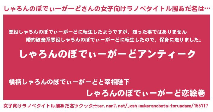 | 意味不明あだ名 | 『自称しゃろんのぼでぃーがーど』 |