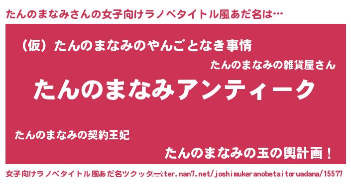 | 意味不明あだ名 | 『自称たんのまなみ』 |