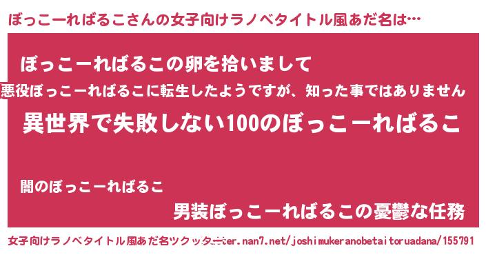 | 伝説のあだ名 | 『聞きしに勝る勇者ぼっこーればるこ』 |