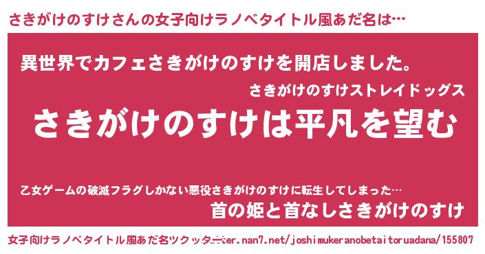 | ヒーロー風カッコイイあだ名 | 『黄金騎士サキ』『ネオサキガケノスケ』 |