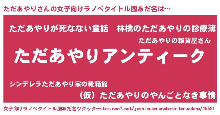 | 胡散臭い通販商品みたいなあだ名 | 『テレビで話題のアガリクス…その名も「ただあやり」』 |